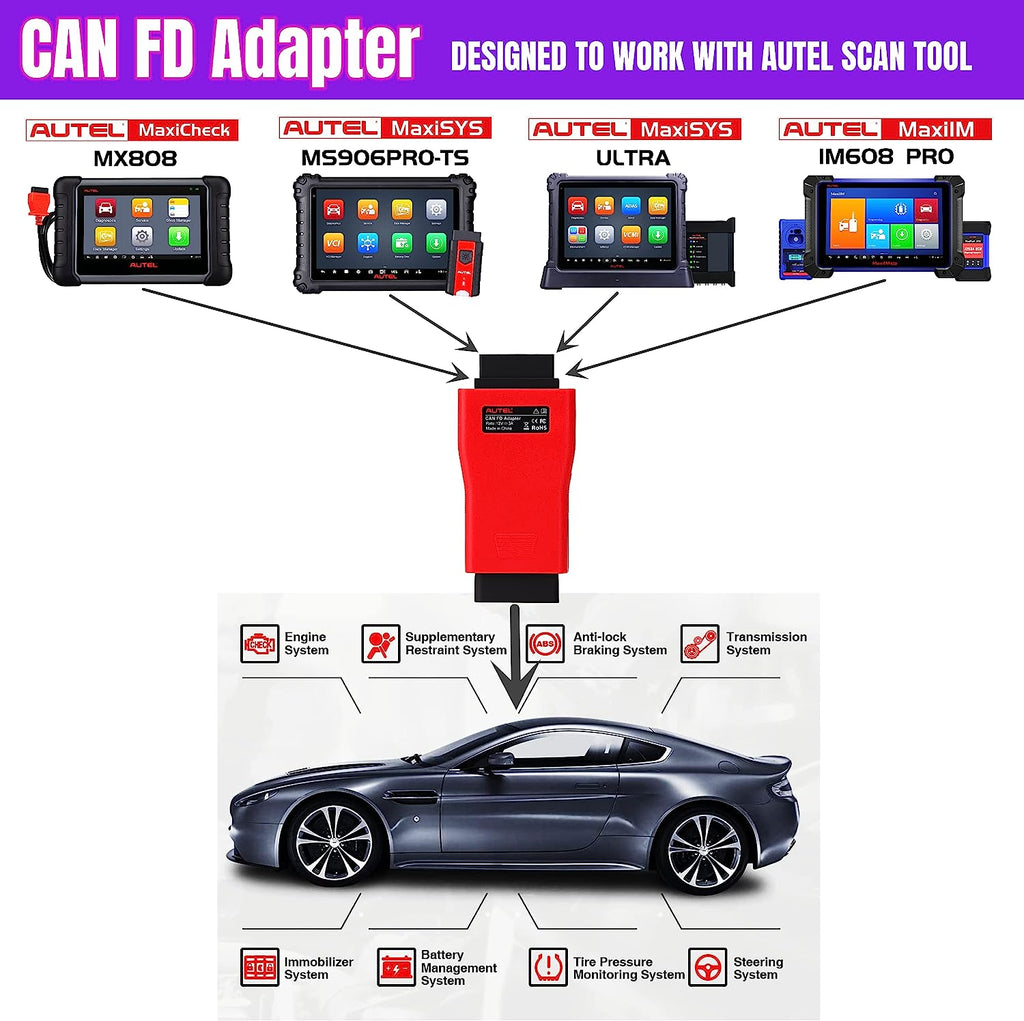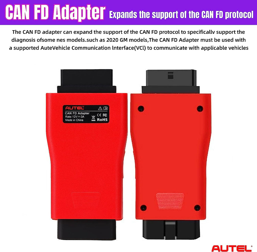 👍[DESIGNED TO WORK WITH AUTEL SCAN TOOL]: The Autel CAN FD Adapter is compatible with a wide range of Autel diagnostic tools, including the Autel MaxiCom MK808series/MX808/MaxiSYS Elite/MS906series/MS908series/MS909/ULTRA/IM508/IM608Pro etc.It connects to the diagnostic tool via a USB cable and to the vehicle's OBD-II port via a standard OBD-II cable.