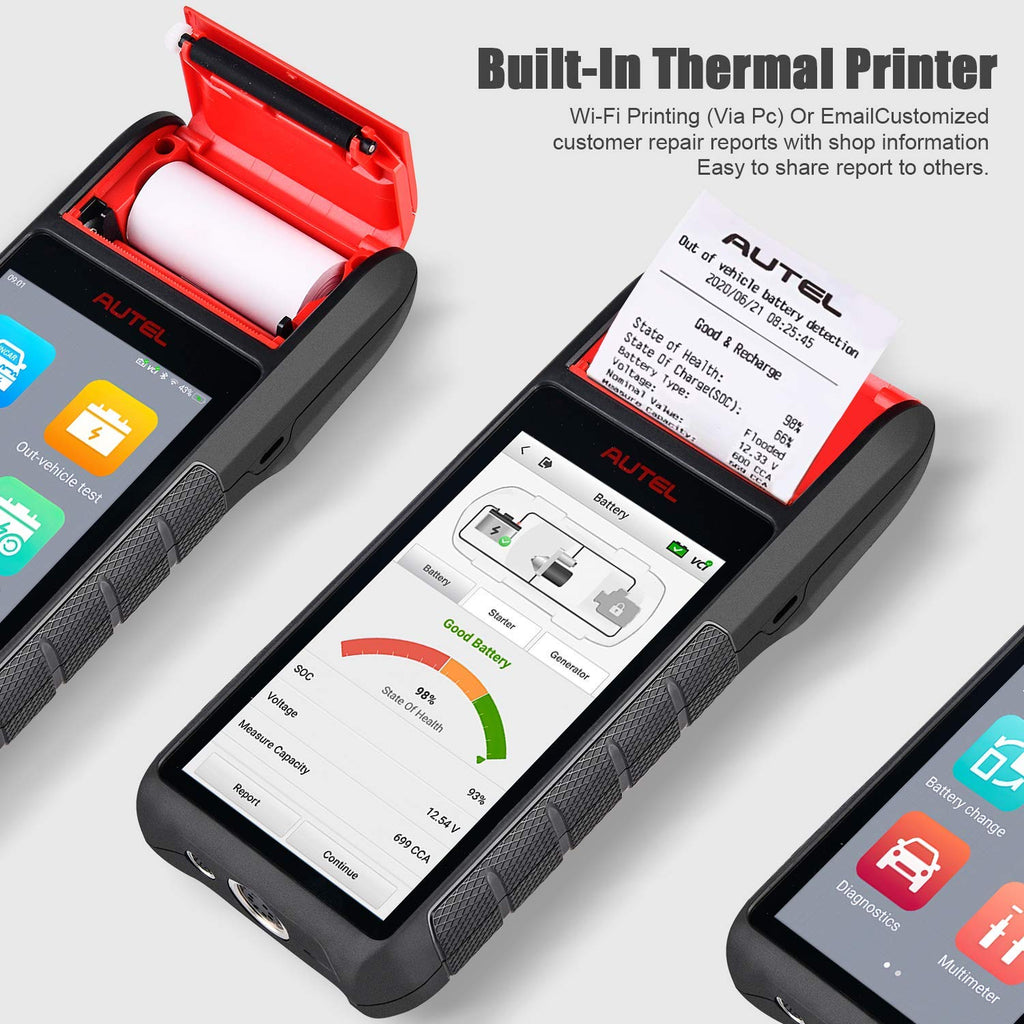 👏[LIFETIME FREE SOFTWARE UPDATES & Wi-Fi PRINTING]👏Autel BT608 battery load tester comes with Lifetime FREE software updates and a 1-Year Warranty to ensure users enjoy the newest functions in time. It can print or share customized reports via Wi-Fi or print test reports via the built-in thermal printer. With comprehensive battery and charging system test functions, If you need tech support, Pls send information to us to get professional support.
