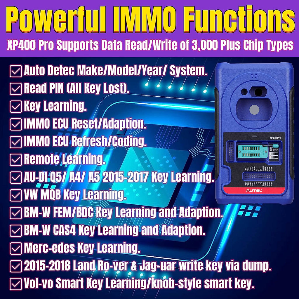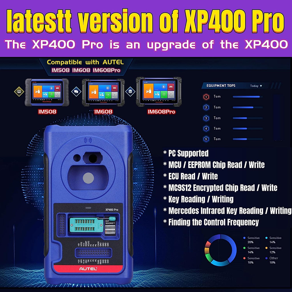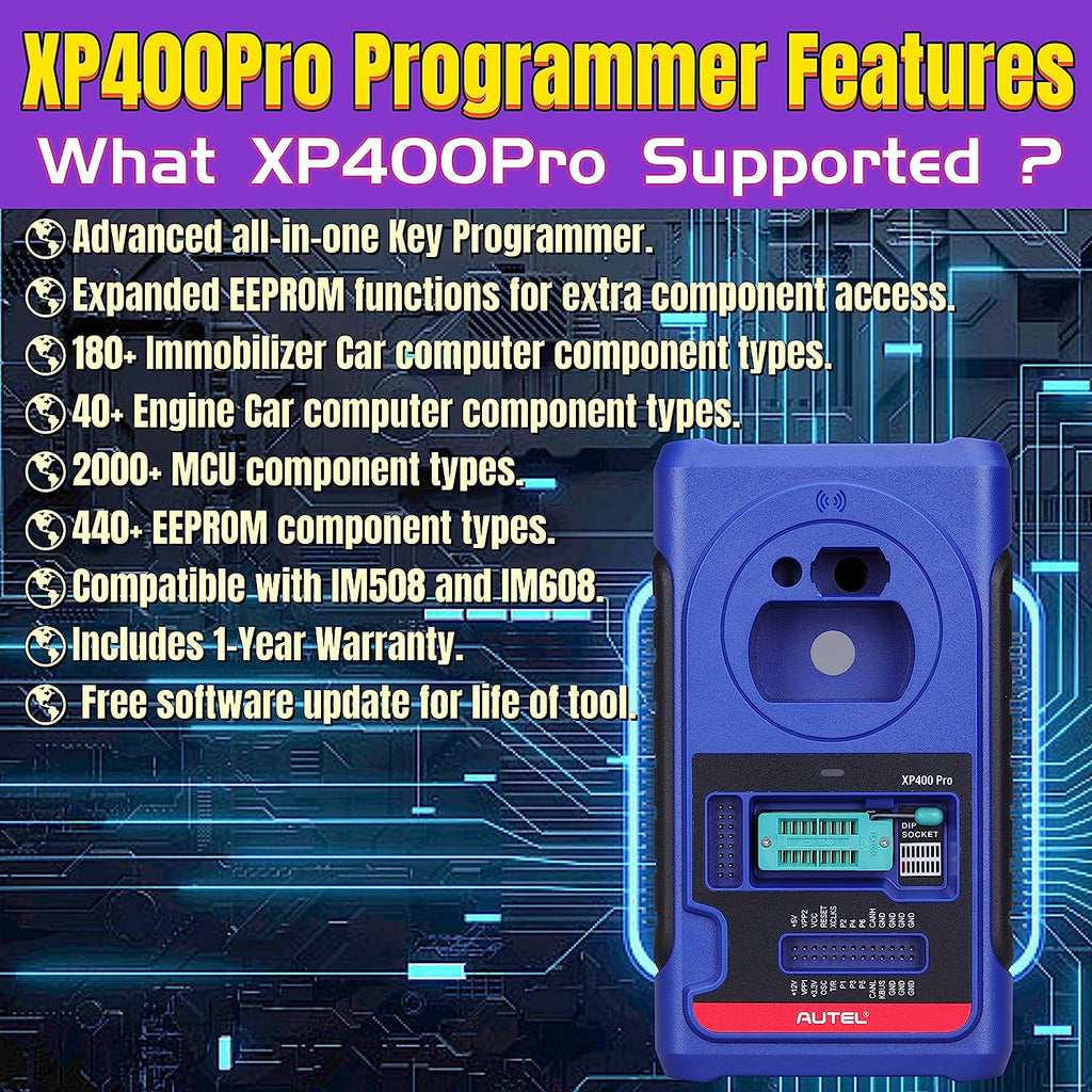 The XP400 Pro has been specially designed to work with Autel's IM tablets like IM608, IM608 Pro to aid automotive technicians to program vehicle keys. With the newly upgraded key programmer XP400 Pro, the MaxiIM IM608 Pro is the most advanced key Programming tool that combines the powerful IMMO and programming functions with OE-level diagnostics and advanced service functions in one Android based 10.1-inch touchscreen tablet.
