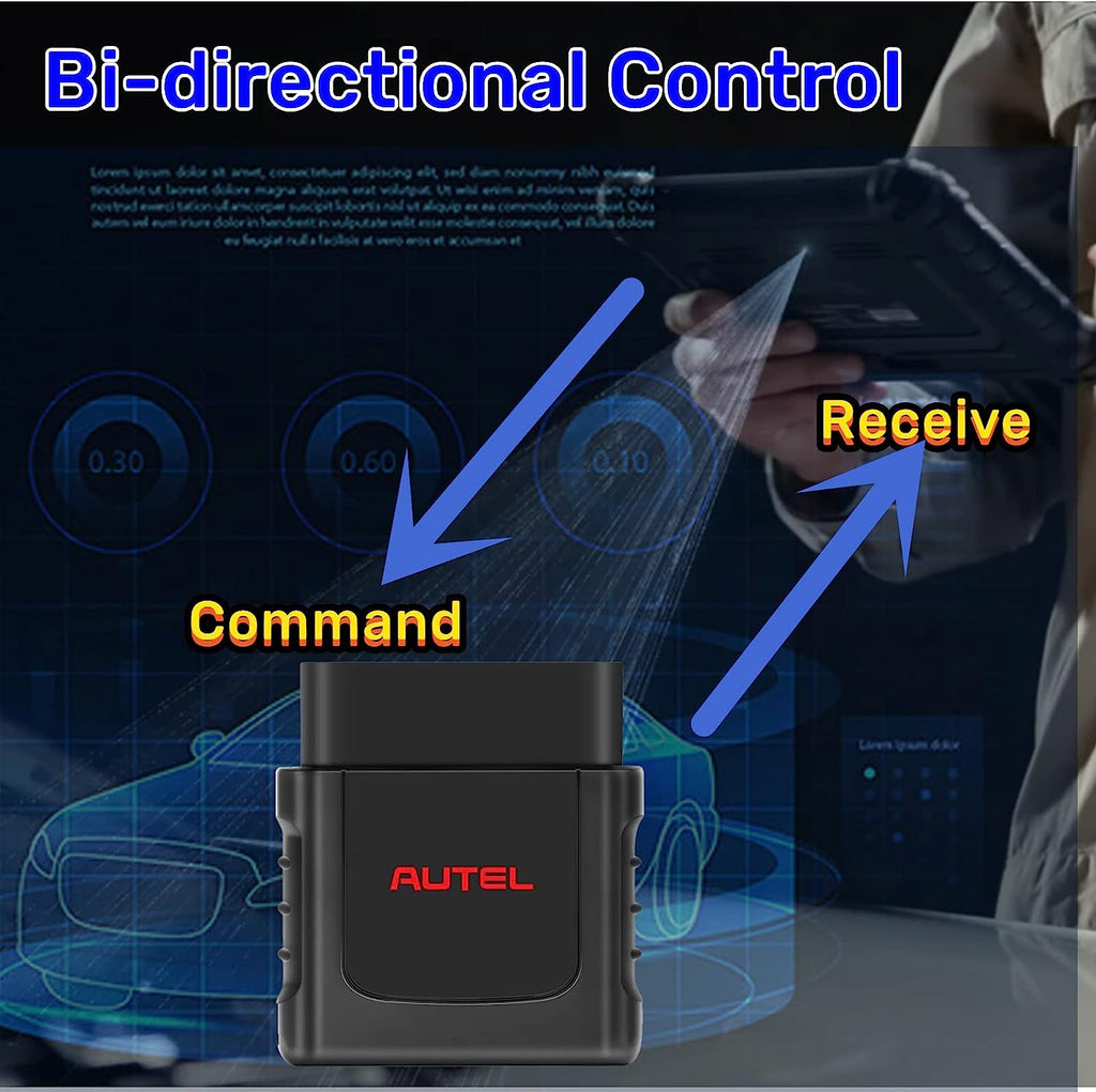 By Autel MaxiVCI Mini Connect to The Autel Tablet with Bi-directional Control to transmit control command to vehicle subsystems and according corresponding action to test functionality.Usage Scenario: