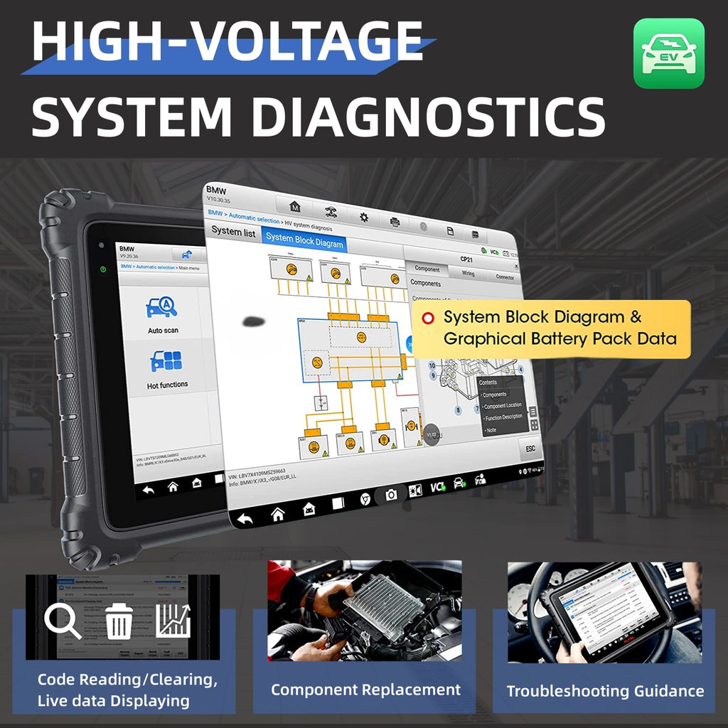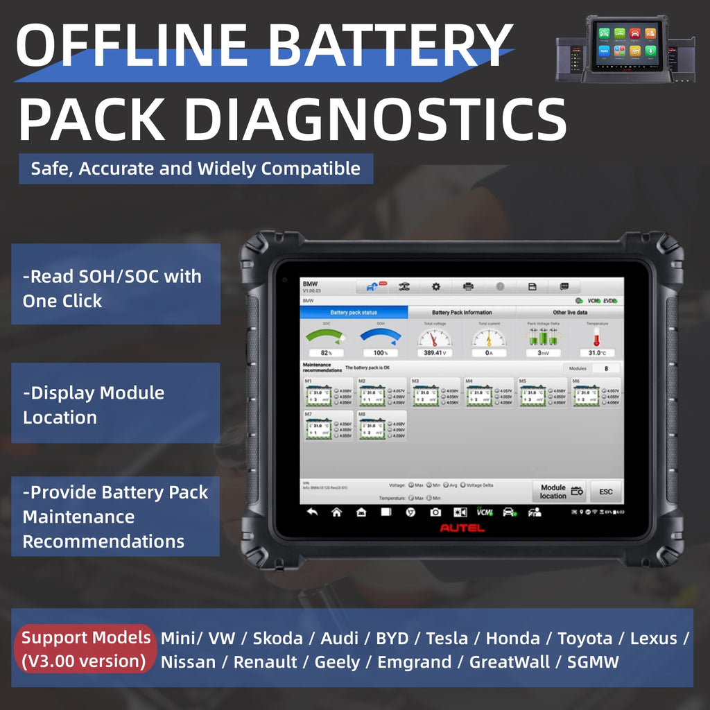 🏆[EV Diagnostics Upgrade Kit]🏆The EV Diagnostics Upgrade Kit includes EVDiag Box and adapters for specific electric vehicles to perform battery pack analysis, it also can work with gasoline vehicles. The EVDiag Box is compatible with the MaxiSys Ultra, MaxiSys Ultra ADAS, MaxiSys MS919, and MaxiSys MS909 tablets. EVDiag Box connects to MaxiFlash VCI or VCMI. NOTE: Autel MaxiSys MSUltraEV does NOT work on all cars. Please send VIN to us for check compatibility.
