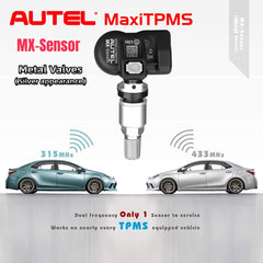 • 👍[Dual-Frequency Autel MX-Sensors]👍 Autel TPMS sensors support both 315 MHz and 433 MHz frequencies, eliminating the need to distinguish which frequency your vehicle's sensors use. MX-Sensors offer performance equivalent to or even surpassing OEM sensors in terms of signal strength, durability, and functionality. MX-Sensors are 100% ID cloneable, requiring no relearning, and can be quickly updated with Autel wireless programming tools to provide the latest vehicle coverage.